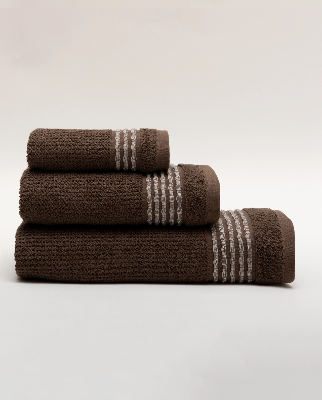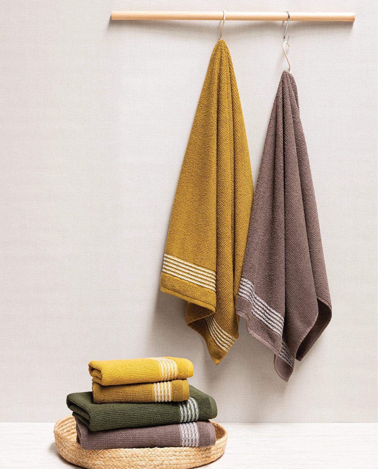 Cotton bath towel with a dense, absorbent texture and a soft touch. Designed for everyday use, it offers effective drying and lasting durability. Subtle striped details add a refined, contemporary finish.