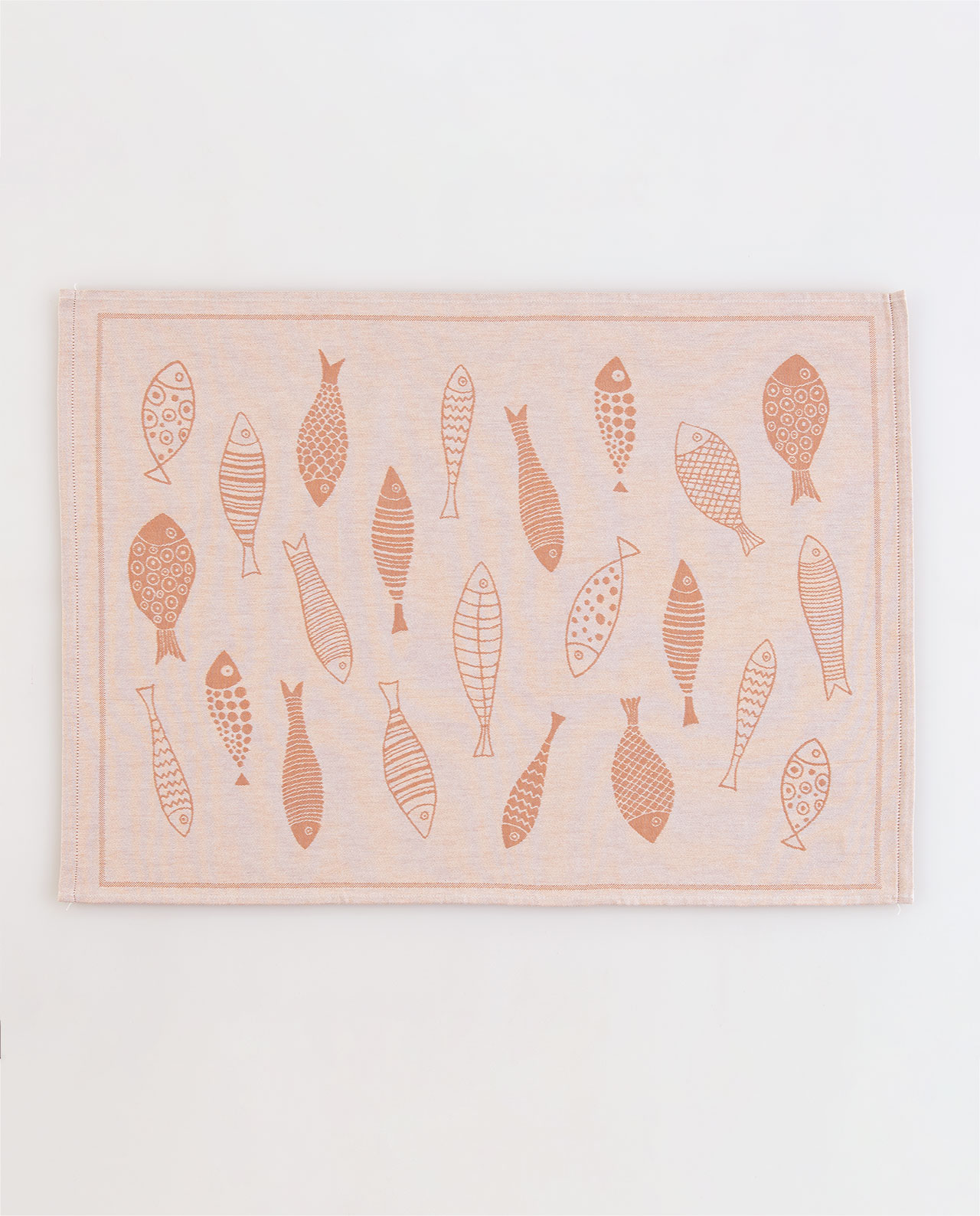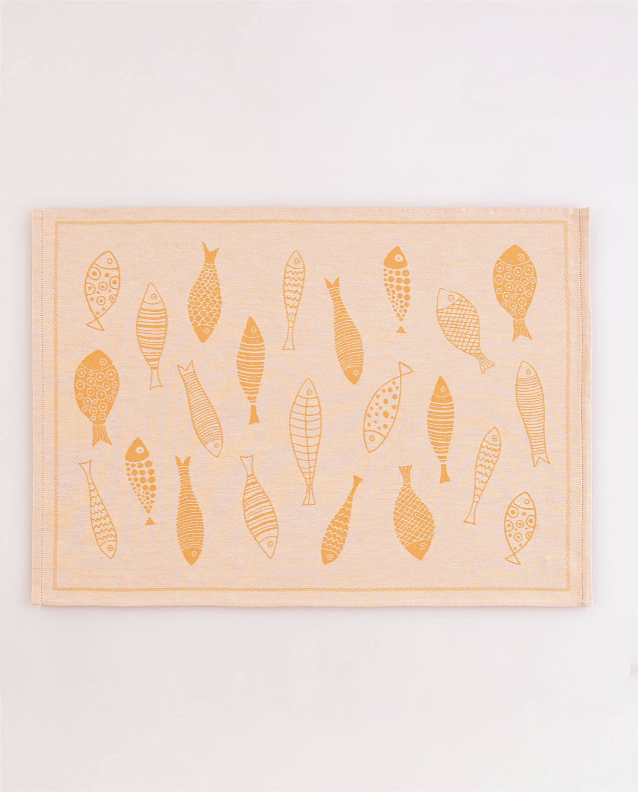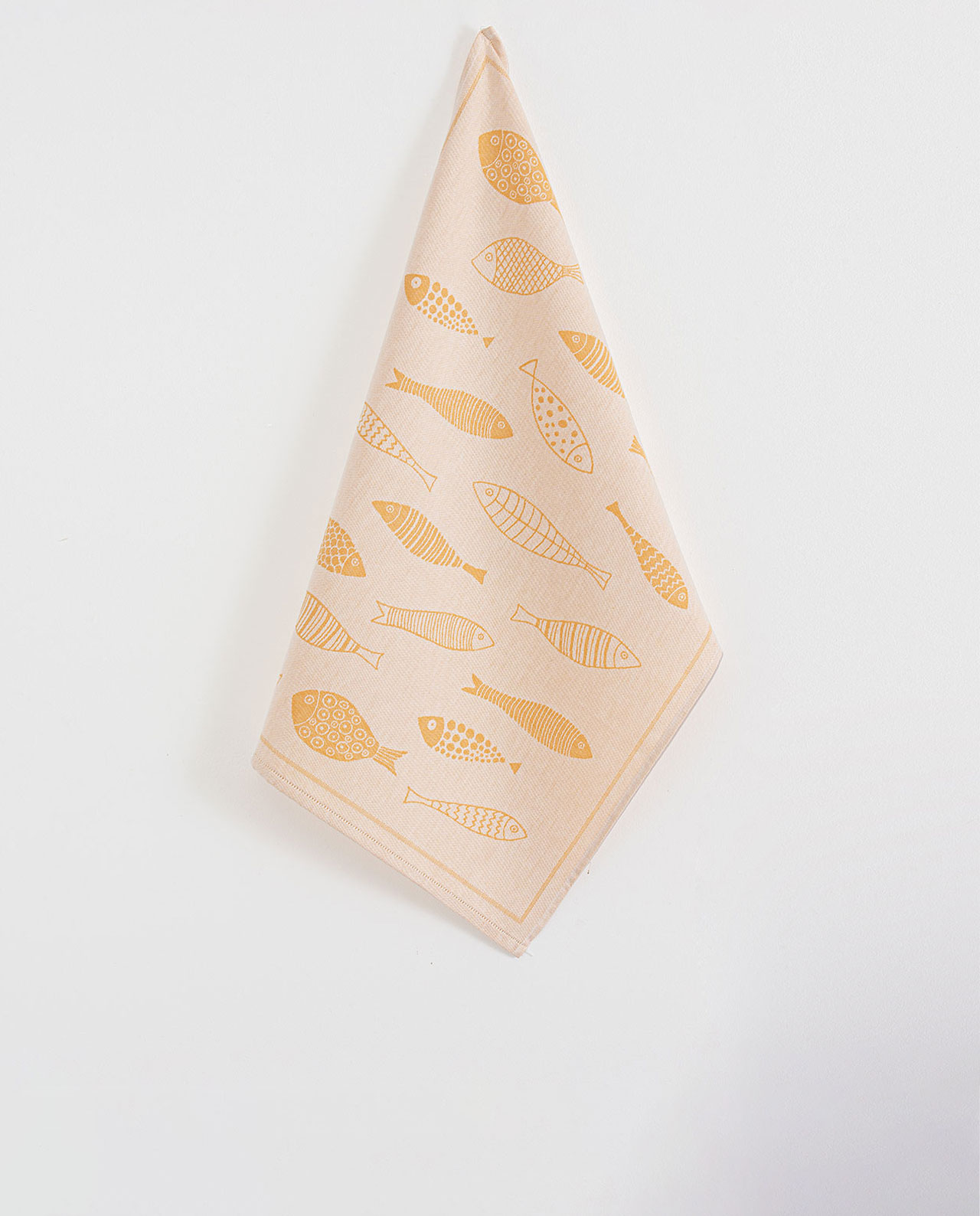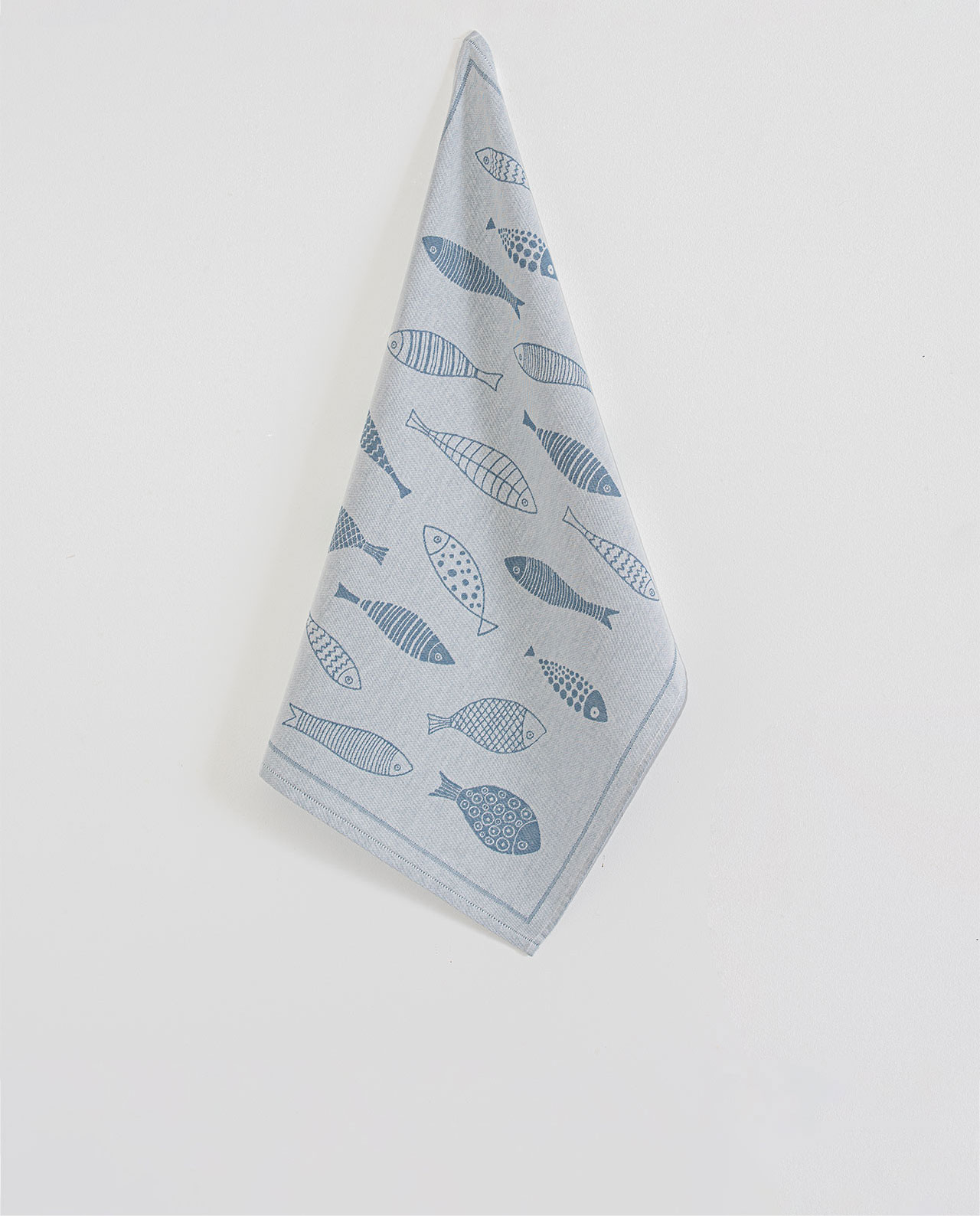 The new Piscis Canvas Kitchen Clothl with a fish motif. Available in 4 colors. 100% cotton.