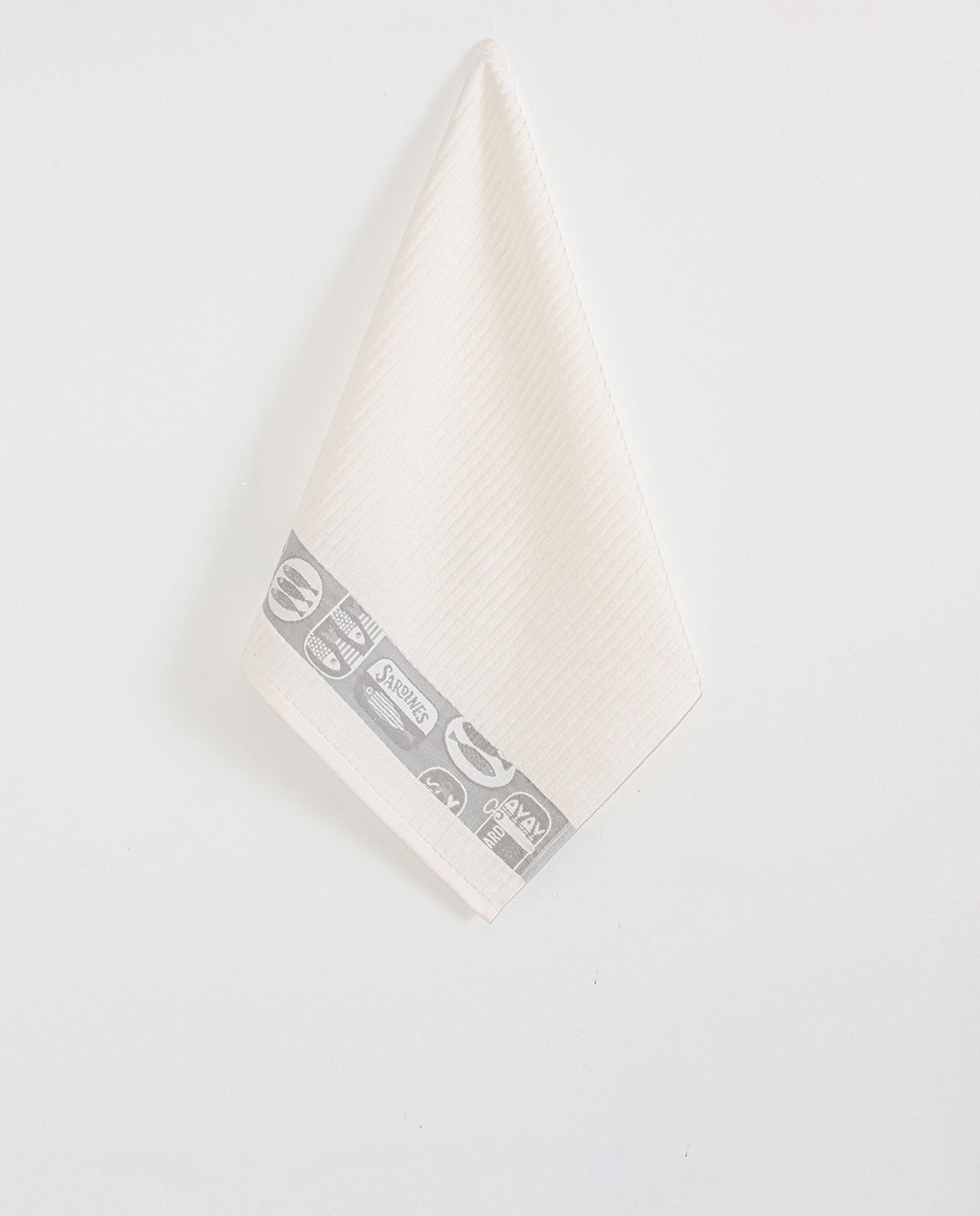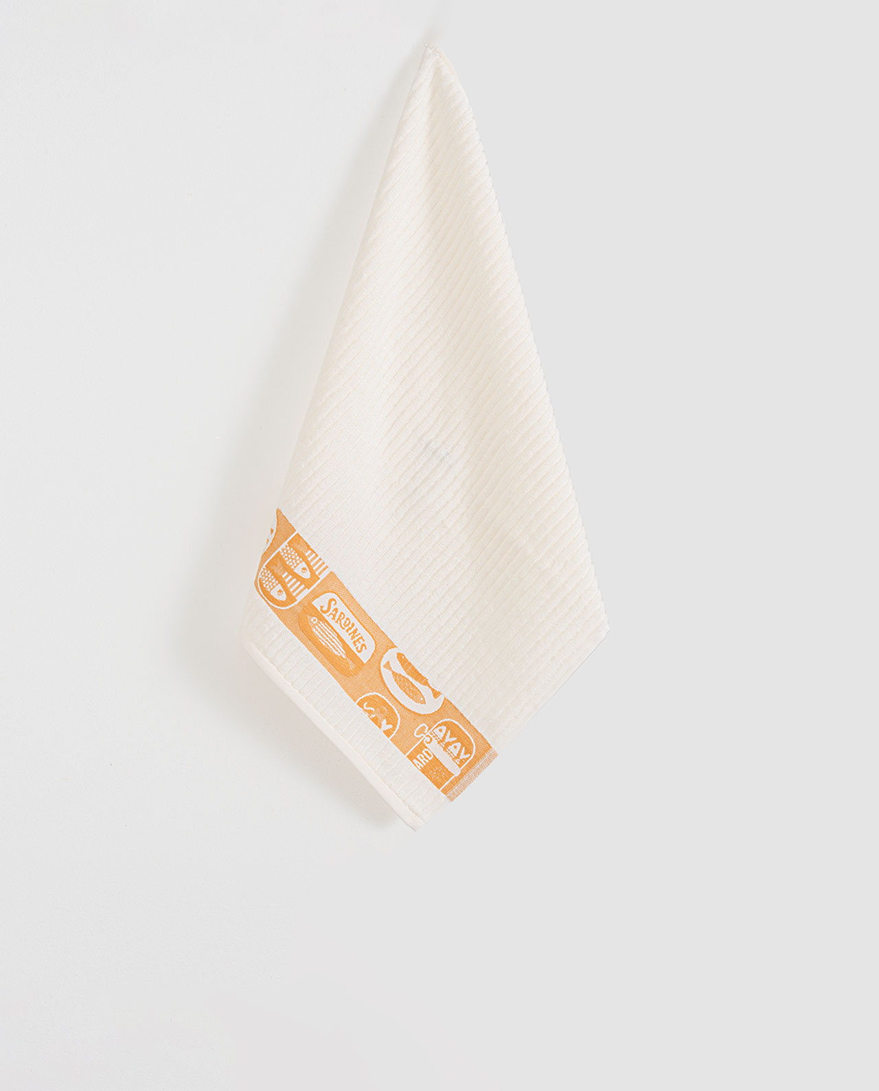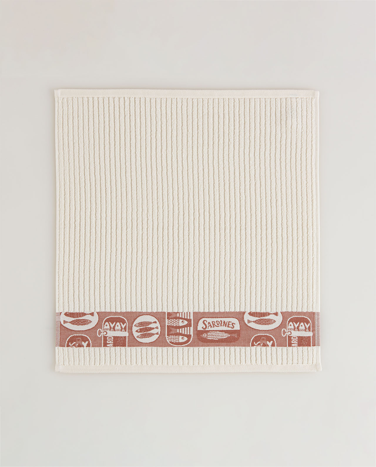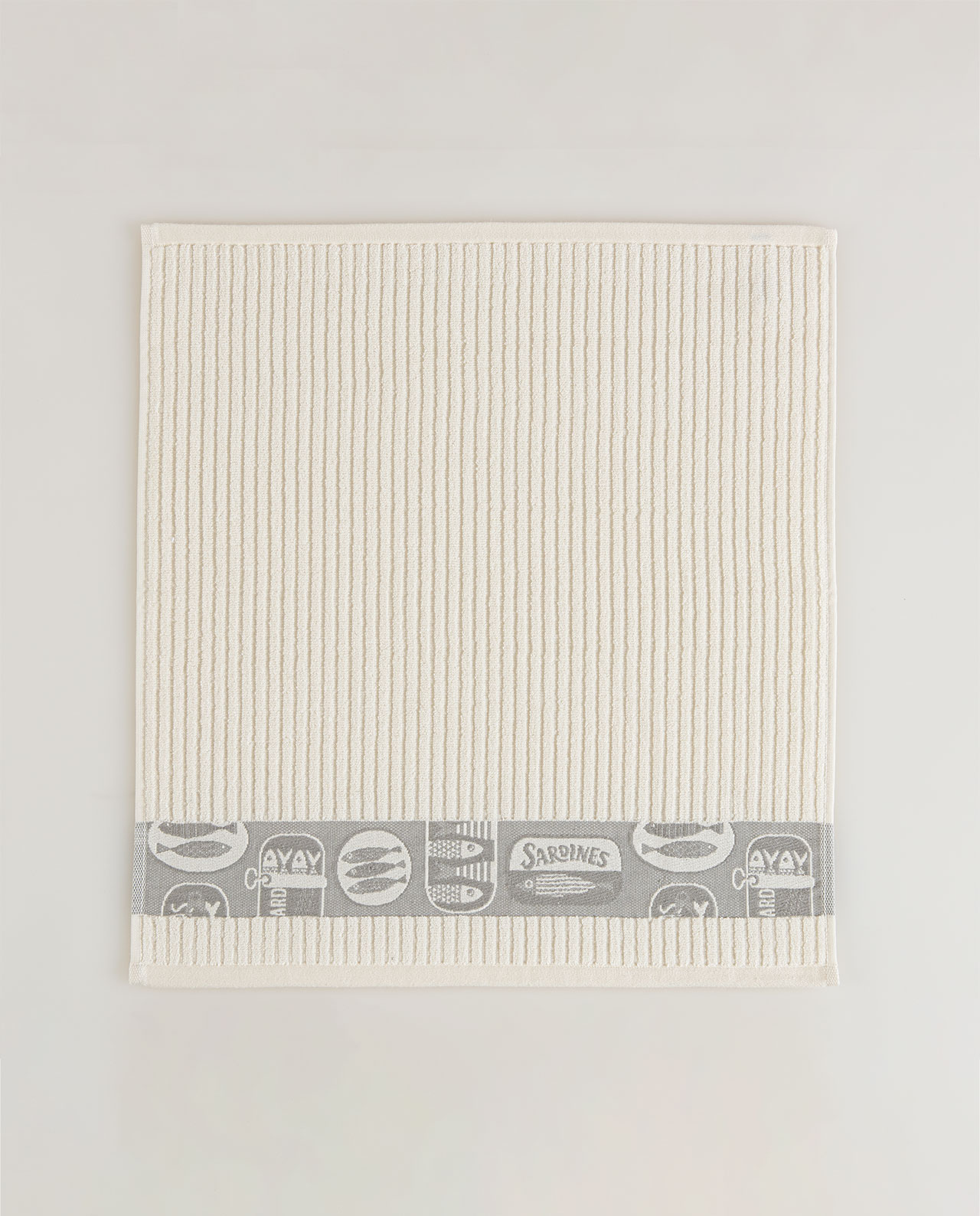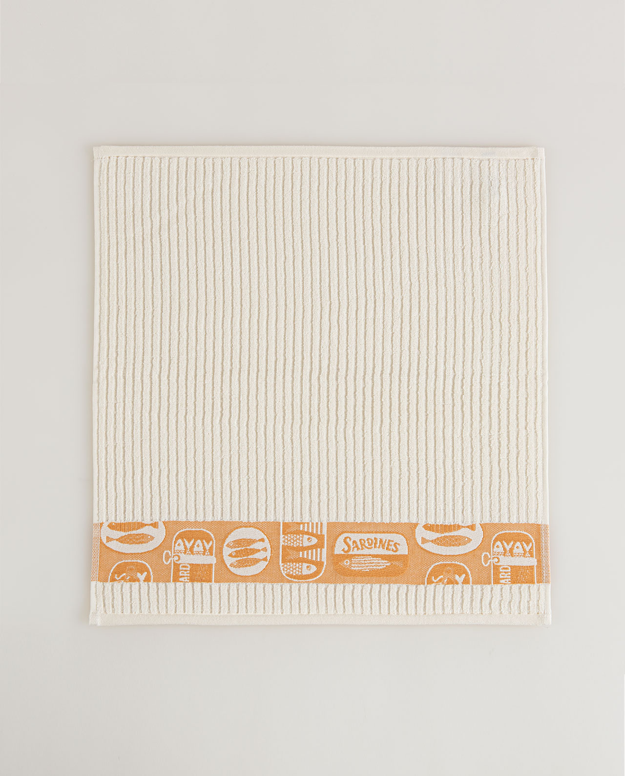 O novo pano de cozinha de felpo Sardinhas com motivos de peixe. Disponível em 4 cores. 100% algodão.