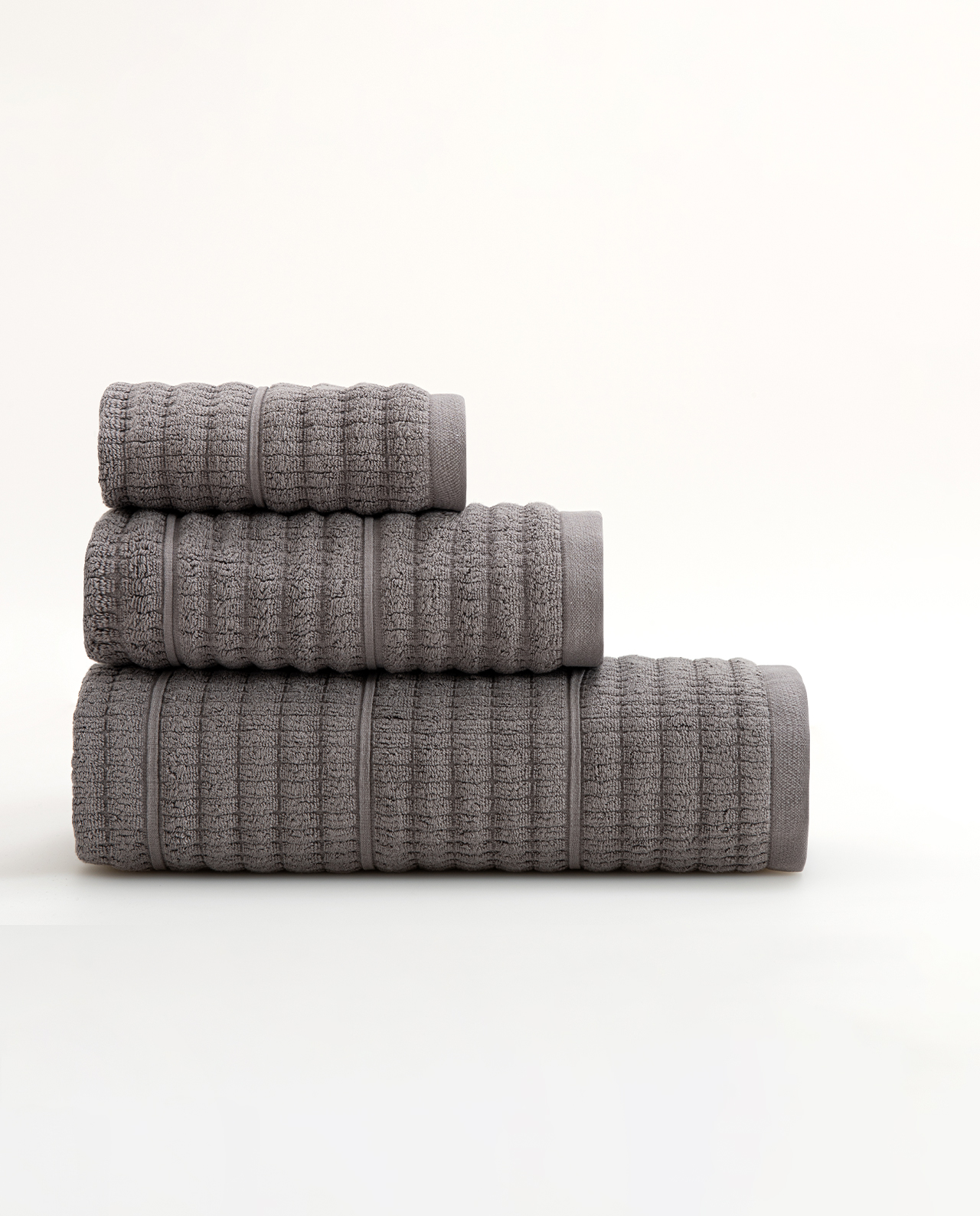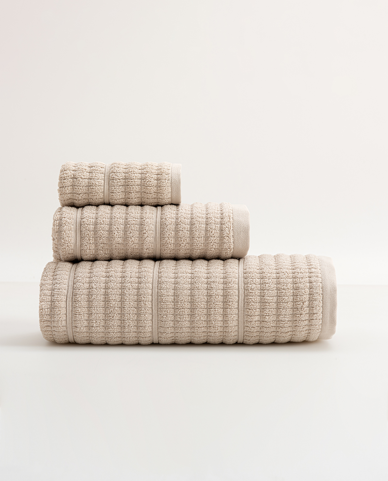 Toalha com uma textura suave e uma elevada capacidade de absorção, caracterizada por um design exclusivo em tons naturais.